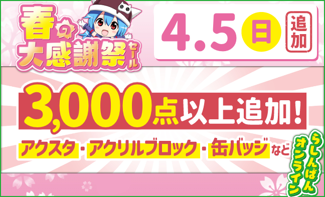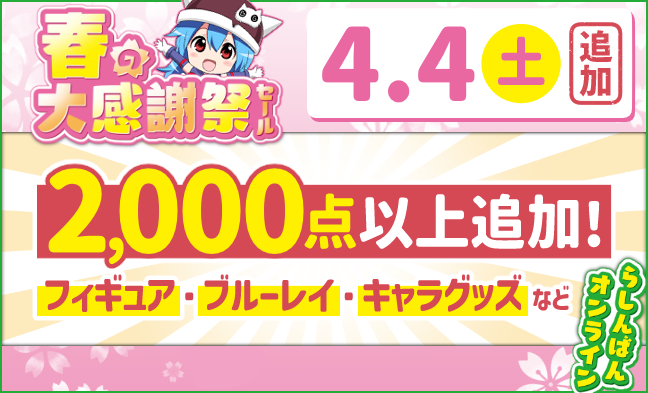4月2日(木)15:00~4月13日(月)14:00のセール期間中に、お客様が購入された商品の合計額です。